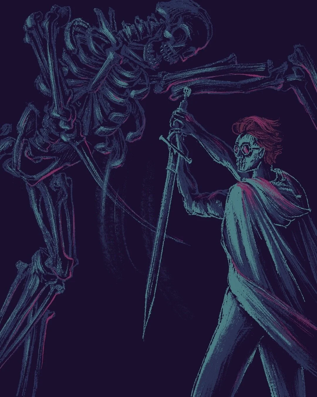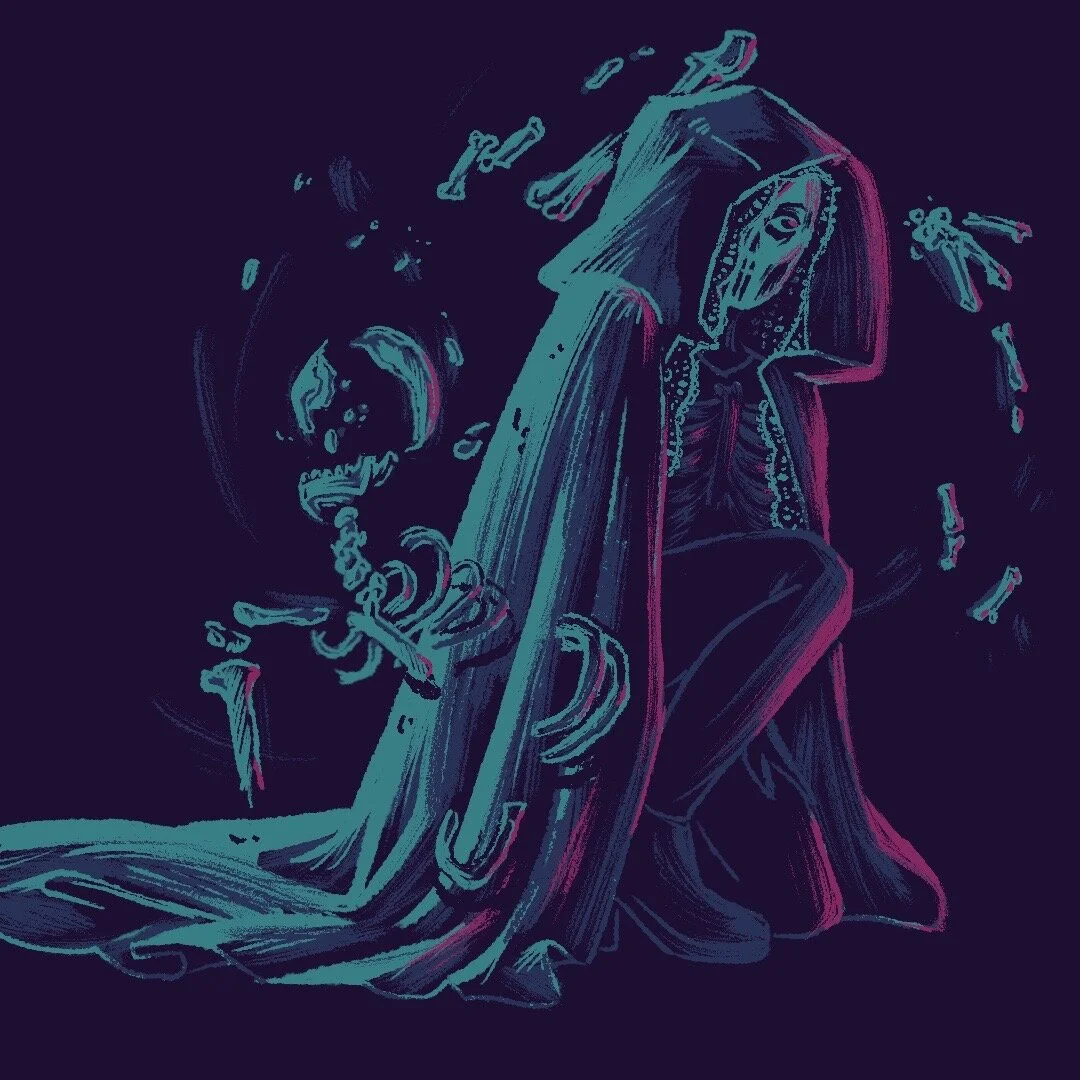 A series of skeletal figures and hand lettering.